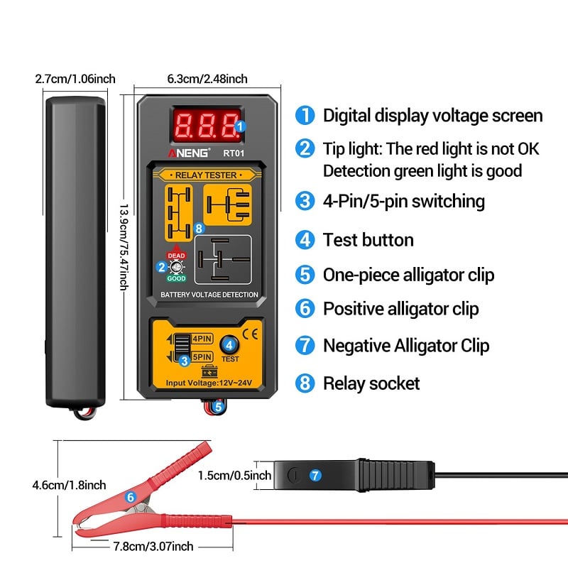 تستر رله خودرو آننگ مدل ANENG RT01 یک ابزار تخصصی برای بررسی سلامت رلههای خودرویی 12 و 24 ولت است که با نمایشگر دیجیتال و طراحی کاربردی، فرآیند عیبیابی سیستم برق خودرو را سریع و دقیق میکند. نام انگلیسی این محصول ANENG RT01 Automotive Relay Tester است و برای تست رلههای 4 پین و 5 پین طراحی شده است.