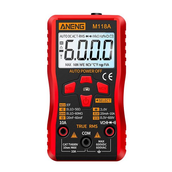 Capacitance measurement F: 10nF-100nF-1uF-10uF-100uF-1mF-10mF-60mF ± 3%.