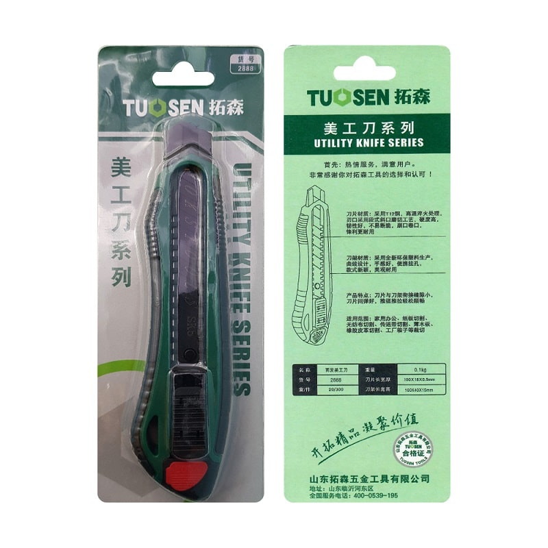 - 1. کاتر افقی (Utility Knife): این نوع کاتر دارای تیغه تیز و کوتاه است و معمولاً برای برش مواد نرم مانند کاغذ، کارتن، پارچه و مواد دیگر استفاده میشود. این ابزار در موارد روزمره و کارهای خانگی نیز مورد استفاده قرار میگیرد.